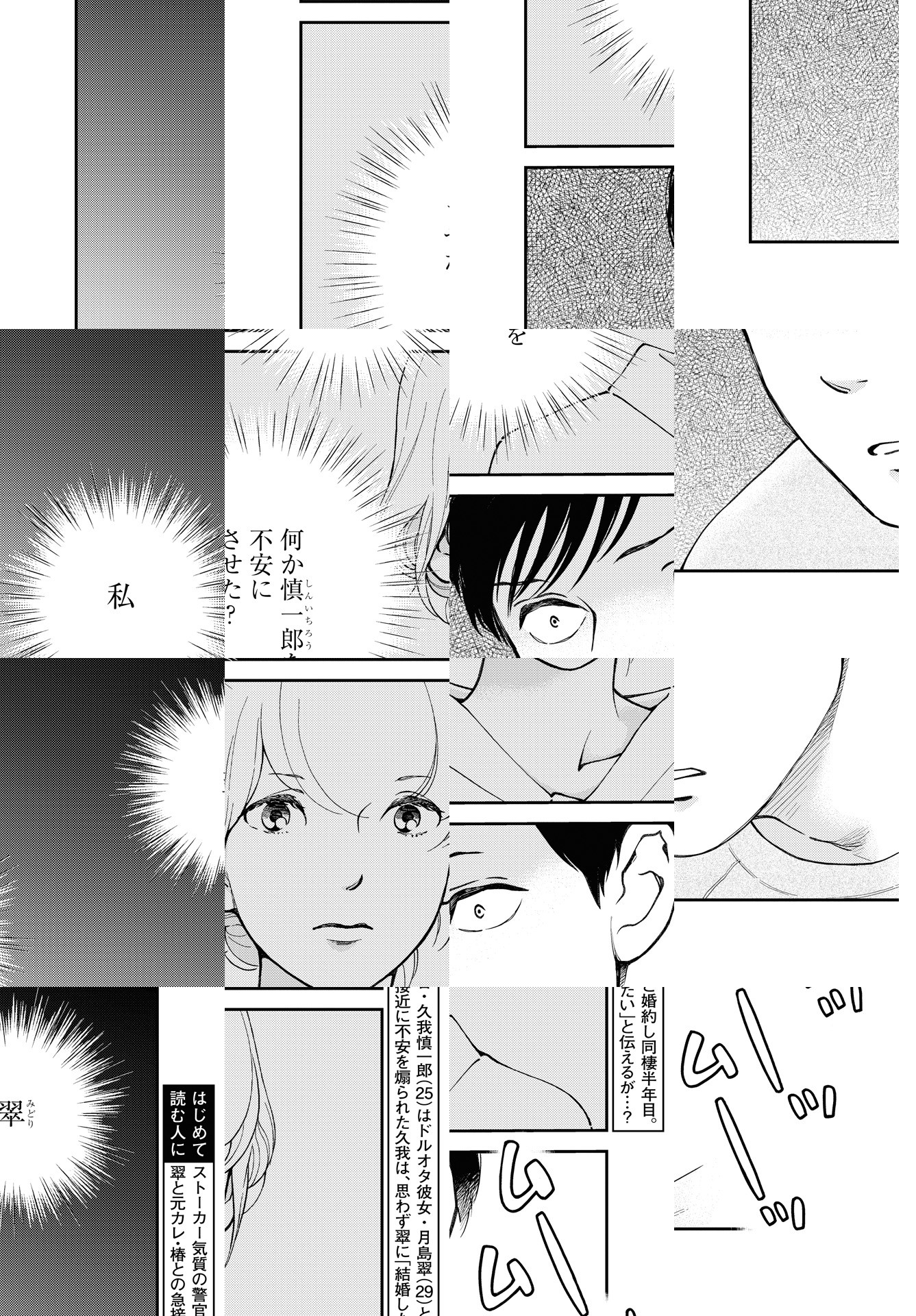 ストーカー気質な警官・久我慎一郎は、ドルオタ彼女・月島翠と婚約、同棲半年目。彼女の推しでアイドルの尚也に懐かれ、友人になった事は秘密のまま。