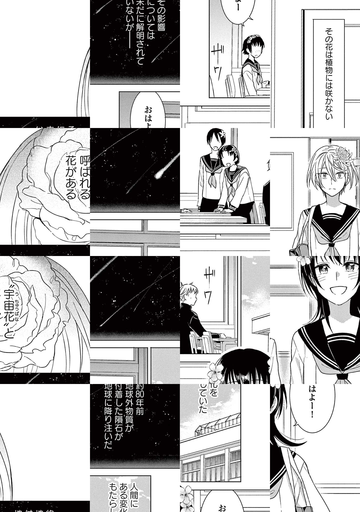 今から約80年前、地球外物質が付着した隕石が地球に降り注いだ。以降、人間の女性の頭に”花”が咲くようになり、その花は”宇宙花”と呼ばれた。